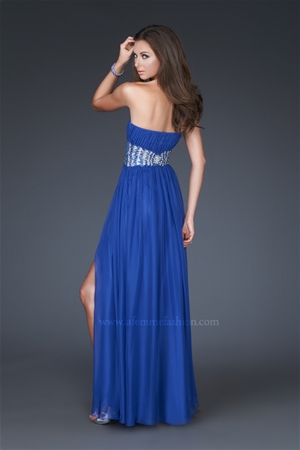 Look sensational at elegant events when you slip into the strapless pleated chiffon evening dress. No matter what party you attend, heads will turn to admire you wearing the sexy strapless pleated chiffon evening dress. The strapless design shows off your bare shoulders and back beautifully. The silky pleated material of the bodice hugs to the waist. Your waistline is defined perfectly by an intricate hand painted design which goes all around the evening dress. The pleated material slinks past your hips and thighs then flares out fully to the floor to invite hours of dancing under the glittering lights.
