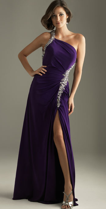 • Style A-Line Purple Floor length One Strap Crystal Sexy Elegant Evening Dress