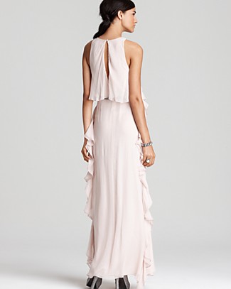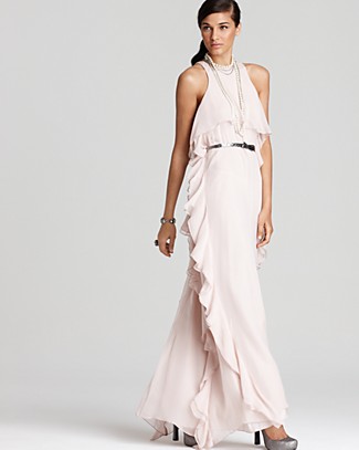 • Tibi Sleeveless Long Ruffle Sequin Belt Dress