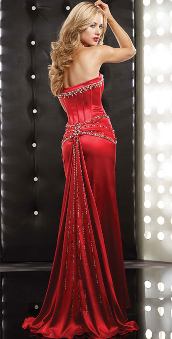 • Tight Waist Strapless Beadings Detailed Bodice Party Skirt