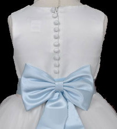 The designer is American manufacturer Sweet Kids comes in both white and ivory. The bodice is wedding quality heavy matte satin with a satin and tulle skirt. The Barbara dress is one of the most popular styles for a modern wedding. The layers of tulle can be seperated and fluffed for a light fluffy princess look. Or, for older girls who want to look more grown up you can keep the tulle pressed for a sleek chic look. This dress can be worn with or without an additional under pettiskirt. The image in the photos and the flower girl in the video is wearing the hoop style petti coat. For a look that is less bell like, we recomend one utilized the attached underslip by fluffing the attached netting and starching it. This way the light airy look will last all day.