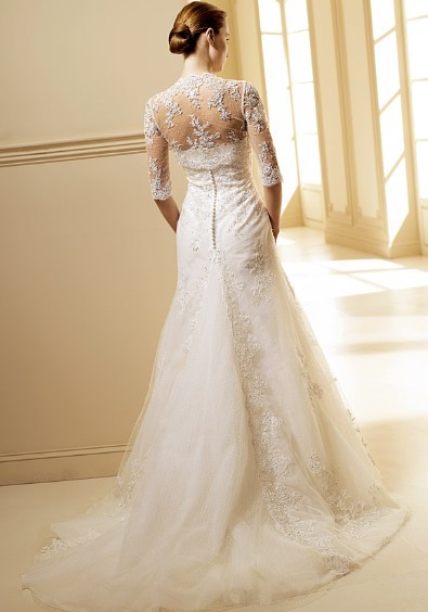 This kind of lace wedding dress features its mermaid design. There are beadings decorated around the body of the dress.The real goods will be 95% matched with the photo.