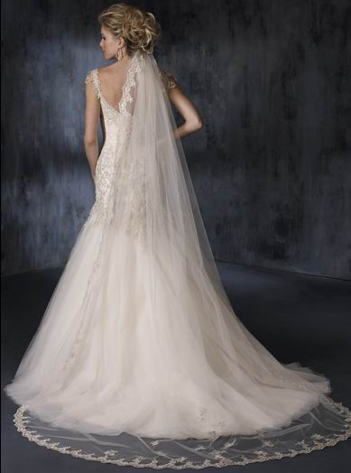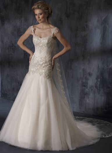 • Cheap Princess Ivory cap sleeve style Appliques bodice and tulle skirt trumpet & Mermaid Wedding Gown