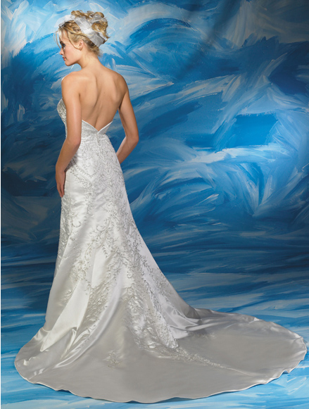 • New Style Mermaid Embroidery Strapless Sweep length Low Back Wedding Dress
