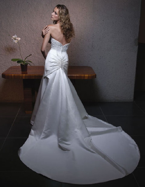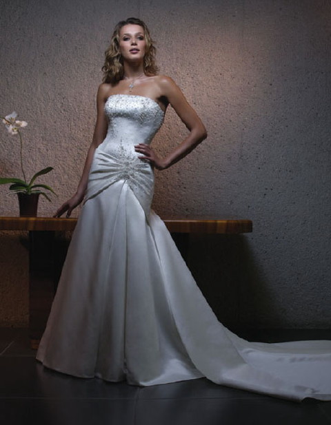 Romantic dress for romantic you, this high fashion designed dress is just for your romantic wedding.Choose the satin strapless mermaid wedding dresses feature the chapel train.Wearing the dress and being the happiest bride.