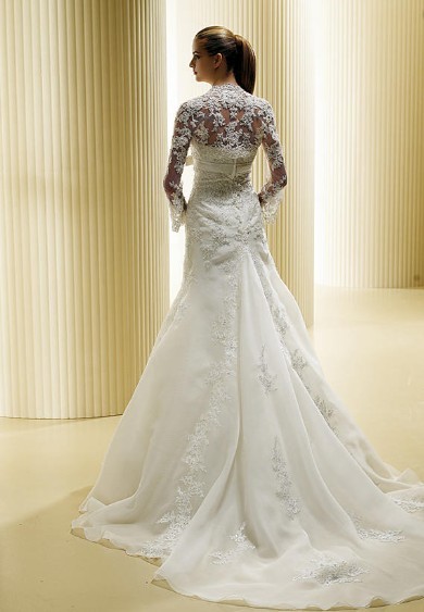 This kind of ivory wedding dress features its mermaid design. There are beadings decorated around the body of the dress.The real goods will be 95% matched with the photo.