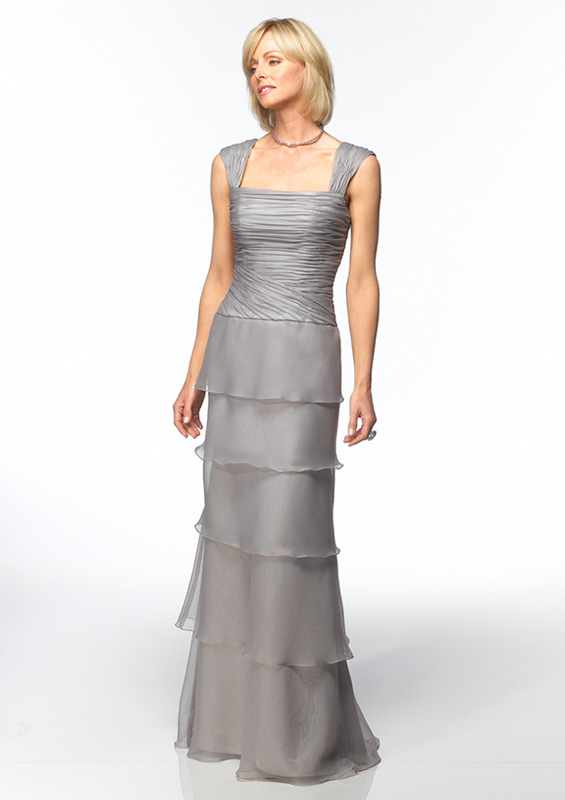 Gray Pleated Sheath Multi-layer chiffon graceful Mother of Bride and Groom Dress