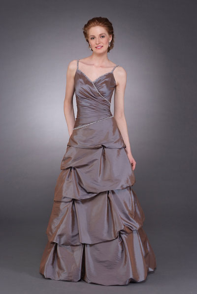 Light Chocolate Spaghetti Straps Puffed Elegant Cheap pleated Mother of Groom and Bride Dress 2011