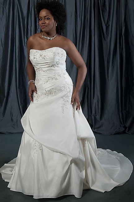 This kind of plus size wedding dress features its applique design. There are beadings decorated around the body of the dress.The real goods will be 95% matched with the photo.