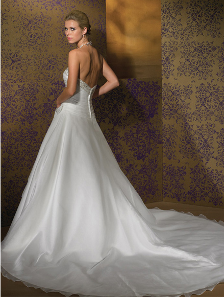 • New Style A-line Organza Ruffles Beads Sweep Wedding Dress