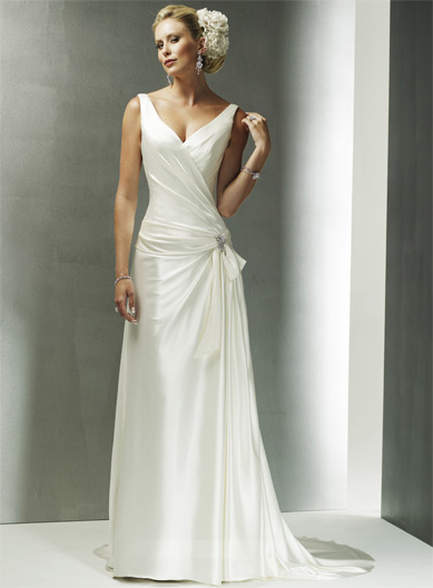 V-neck Dropped Waist Sweep Train Satin Wedding Dresses (yz0354)