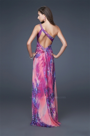 Printed party one shoulder dress, straps and side adorned with beautiful beads. For a perfect fit please have your measurements compare with the size chart of the style that you choose.
