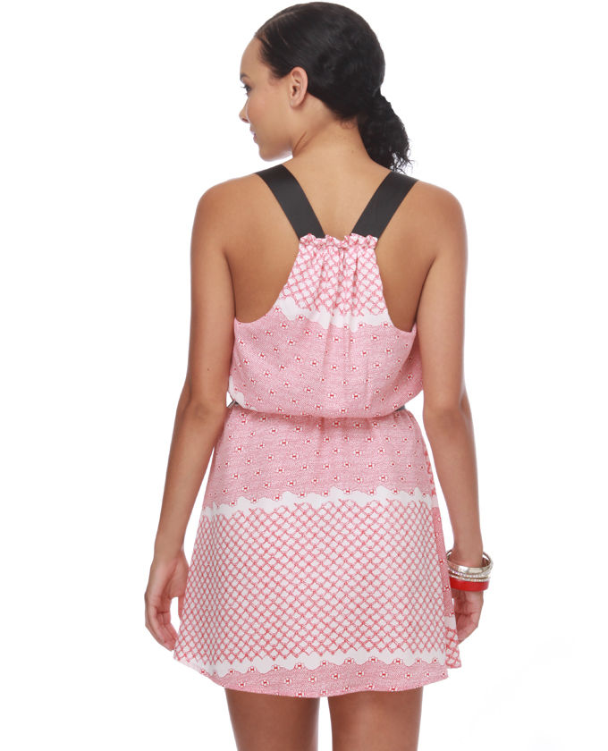 Load up an open-air picnic, the Alfresco Ambiance Crimson Print Dress, and the cute dude next door and head out for lunch in the park! This adorable red and white print dress is on par with the best sandwich, with cute ruching underneath wide black grosgrain racer-back straps with front and back. Matching black tie wraps around elastic hips for a classy accent, white-colored v-neckline keeps you cool inside shade of a tall shrub! Fully lined. Model will be wearing size small. Little measures 33" shoulder to hem sprained ankle. 36" bust. 24" waist (relaxed). 100% Cotton. Hand Wash Cold. Created with Love in the U.Utes.A.
