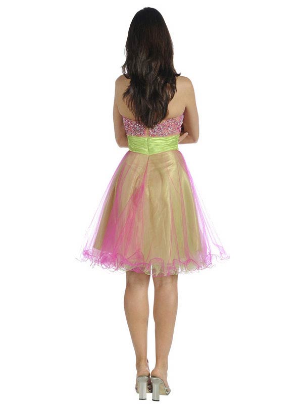 Sweet and flirty, this gorgeous short dress features a sweetheart bodice adorned with exquisite beading details. A little high waist band and the short organza skirt with undee hemline finish the look. Ideal for your formal prom, your semi-formal homecoming, or any other dressy affair, this may be the ultimate replacement in your closet for the little black dress.