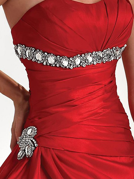 Cheap Elegant Ball Gown A-line Style Red Strapless taffeta floor length cheep Prom Dress