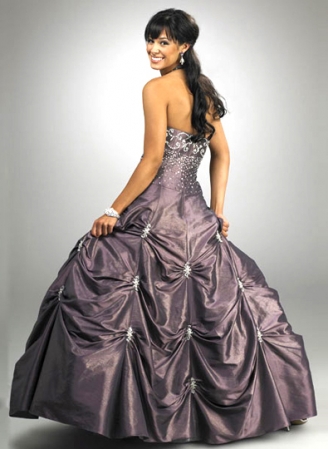 Custom designer vintage cheap prom dresses! Taffeta V-shaped halter prom ball gown with a beaded embroidered bodice. Features a gathered waistband with crystal detail at the dropped waist. Full caught-up skirt in floor length. The corset back closure and the dropped waist make for a flattering fit!