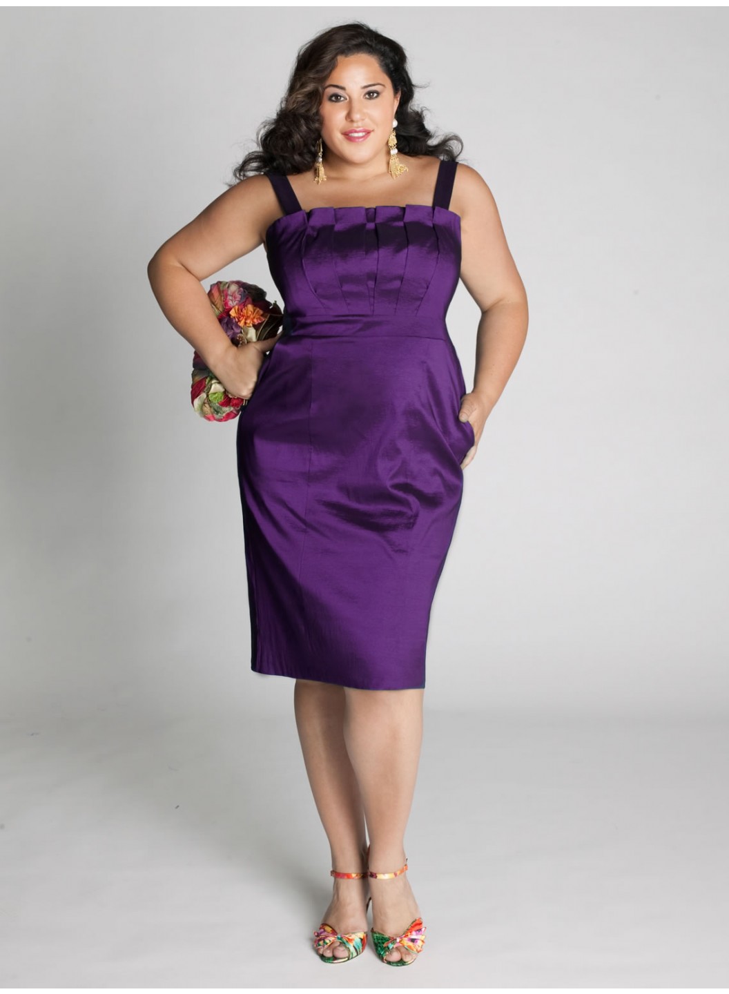 Care: Dry Clean Only Origami pleated bodice with detachable strapsHigh waist straight skirt hits at the kneeSkirt is shaped with princess seamsFully lined with back zipperShoulder to Hem Length: 42"-45"