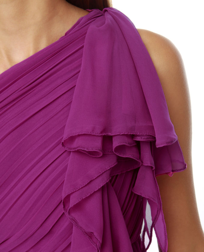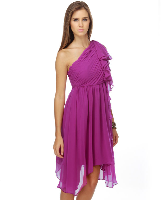 All those other flowers never stand a chance when you enter in the ballroom in the Iris of your Beholder One Shoulder Purple Dress; all of eyes will be on you! Lovely bright purple chiffon pleats softly all around bodice and falls in petal-like ruffles through left shoulder and decrease left side of dress. Ask the band for a waltz, because you're sure to want to show off the whirling skirt with longer attributes! Fully lined. Model is actually wearing size small. Tiny measures 34 shoulder in order to hem. 5 longer during sides. 8 sleeve (from neck line). 24 waist. 30 breast. Self: 100% Polyester. Lining: 95% Bamboo, 5% Spandex. Dry Clean Only. Brought in.