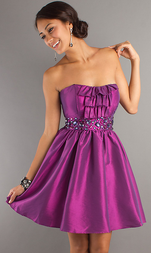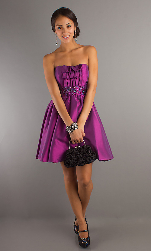Short strapless dress.
