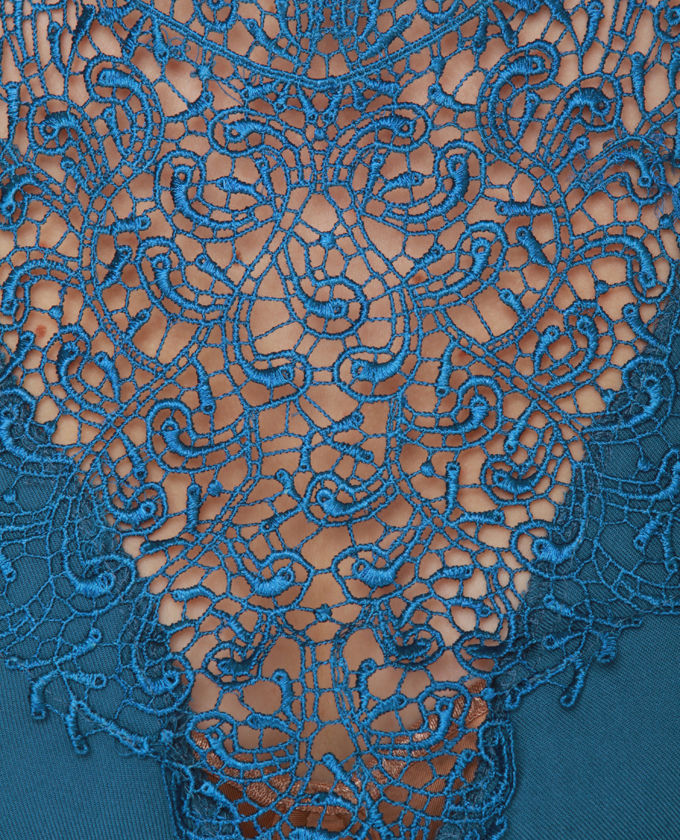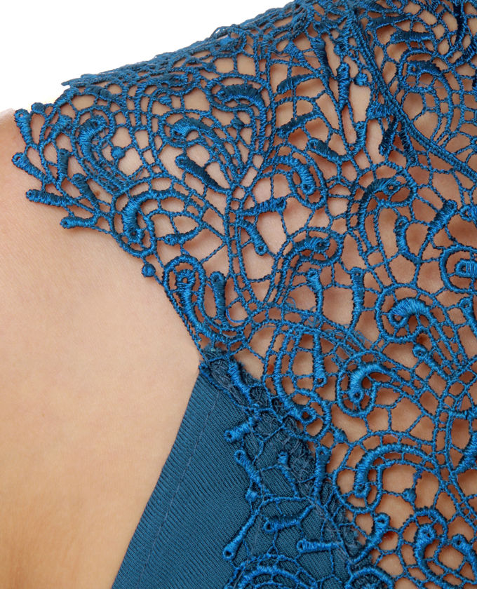 Clean out the oven, the captivating new Plungecake Lace Blue Dress weren't able to get any hotter! Watch your fingertips! A lacy panel creates a dazzling garnish about your neck and shoulders and drops right into a sheer plunging neckline. Again of neck is linked with a ribbon of fabric upon a low, open back. Unlined. Model is wearing a size Small. Small measures 33" Long. 34" Bust. 36" Waist. 100% Rayon. Dry out Clean. Made with Love inside U.S.A..