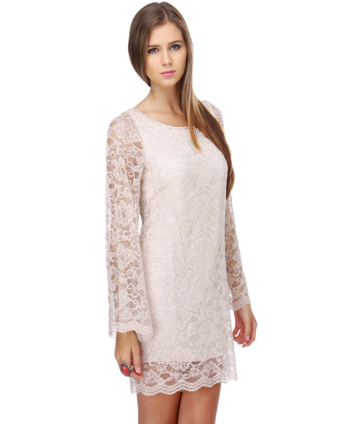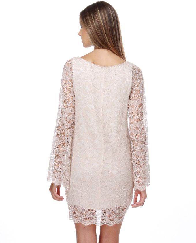 Party down the Champs Elysees with the chicest of the chic in the Pour Les Filles Tie Beige Dress. Gorgeous beige wide lace top over an off-white slip provides shimmery embroidered detail that will outshine even the brightest Parisian superstars. Shift style dress has scalloped sprained ankle injury and darts at bust for your lovely feminine fit, although three-quarter flare sleeves add a popular, bohemian feel with additional scalloping at cuffs. Set with your highest pumps along with your best bling for a wonderful night out with the girls!! Dress is definitely lined. Model is sporting a small. Small measures 32" get to hem. 27" sleeve from neckline. 32" Bust. 30" Waist (relaxed). Self applied: 100% Nylon. Lining: 100% Rayon. Dry up Clean Only. Made with Really like in the U.S.Some sort of.