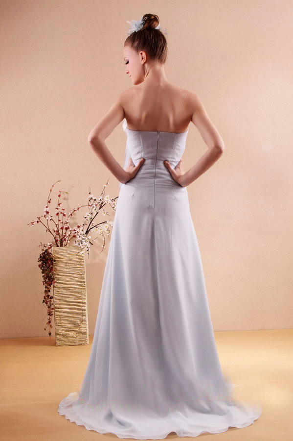 These pretty lilac prom dresses are crafted from a soft lilac fabric and have simple elegant lines that extend slightly out. Ruffles extend obliquely down the bodice from the left shoulder to the right hip. The ruffles of these prom dresses emerge from an oblique row of roses created from the same lilac fabric. To the right of the ruffles the rest of the bodice of the prom dresses is adorned with dainty purple jewels. These graceful prom dresses are quite detailed in their nature, so are best rounded off by a simple and light creation of flowers and feathers in the hair.