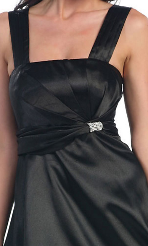Empire cut short party dress with diagonally shirred bodice and broad straps.