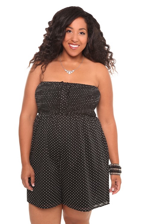 Kick off summer in classic cool style in this black and white polka dot tube romper. Elastic back. Smocked waist.
