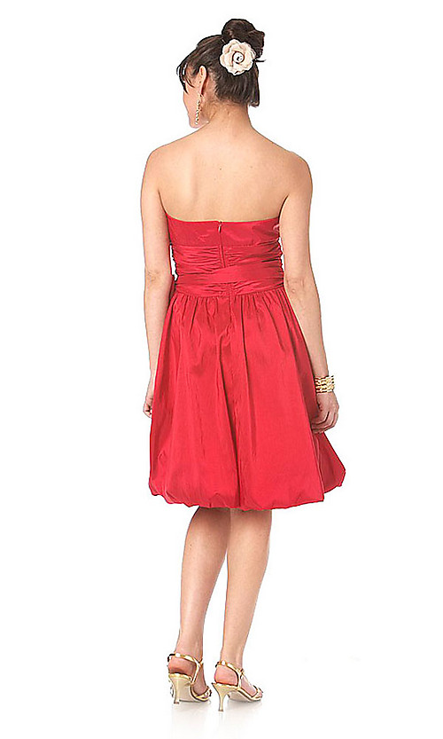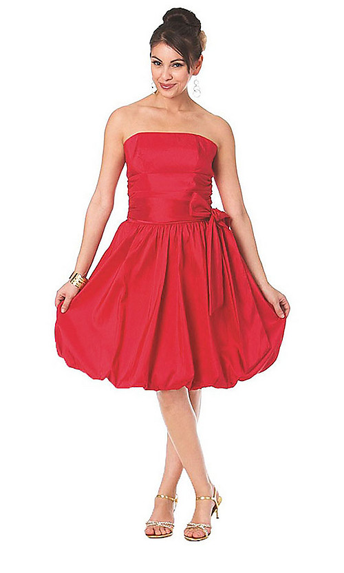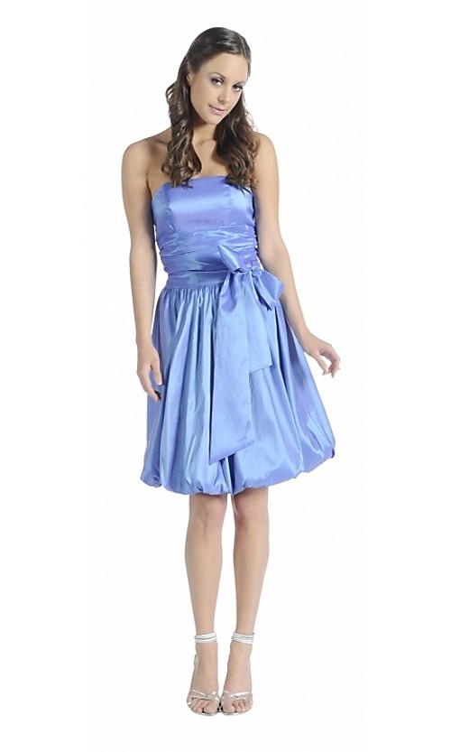 Strapless bubble skirt dress with bow.
