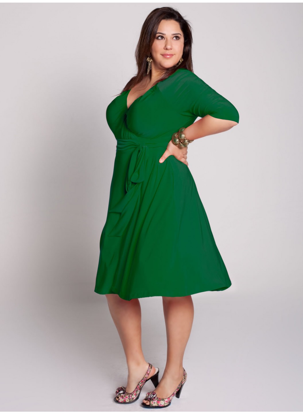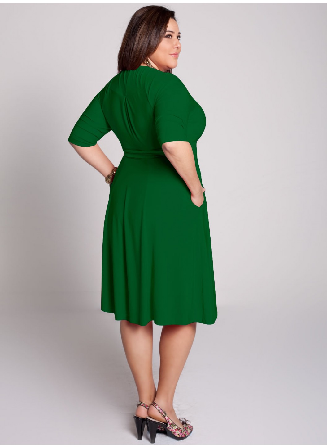 Care: Hand Wash in Cold Water or Dry CleanSurplice bodice is shaped by pleatsRaglan 3/4 length sleevesSet-in waistband can be adjustedTrue wrap-around silhouetteA-line flared skirtSide seam pockets