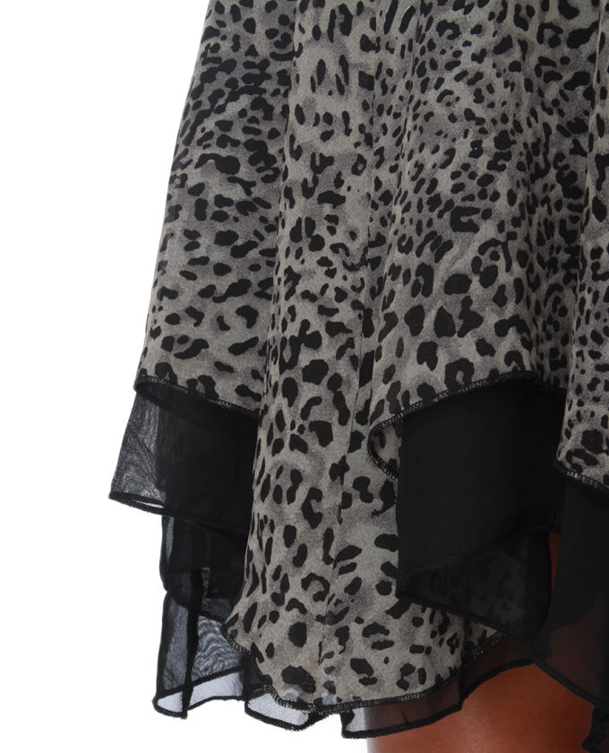 Even famous felines desire a lady love, so slip into the Sylvester in Love Grey Animal Print Dress to be the actual purrfect paramour! Black and grey chiffon ruffles cattily around surplice bodice and around ruched waistline, polishing off off at playful handkerchief sprained ankle treatment. Adjustable spaghetti strap ties cross at back, lacing by additional ruffles to tie over keyhole opening. Additional layer with black chiffon peeps out at underside for extra sass. Hidden side zipper/hook clasp. Skirt is lined; bodice is usually slightly sheer. Model is actually wearing a small. Small methods 30" long, plus adjustable straps. 30" destroy (relaxed). 26" waist. 100% Polyester. Palm Wash Cold. Imported.