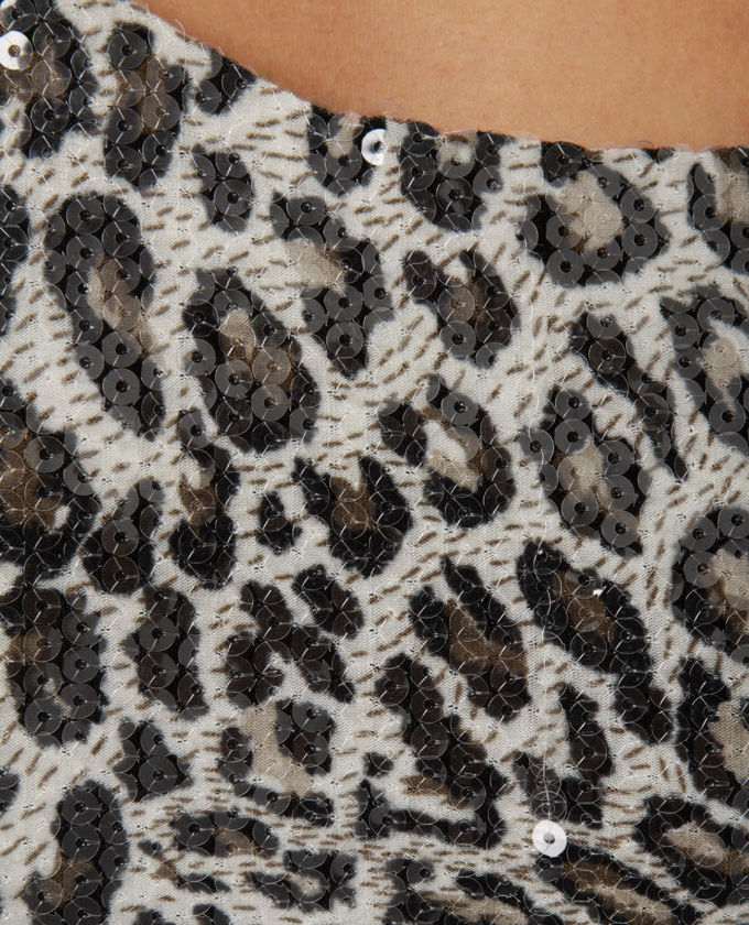 The world thinks sushi dinner and a movie will be underway in the Take Meow-t Tonight One Shoulder Sequin Dress! You can expect a few cat-calls and plenty of admiring looks within this glamorous knit dress that features a stretchy leopard art print covered in glimmering clear sequins. Asymmetrical neckline is lined using a no-slip strip for a flawless evening out! Invisible side zipper/hook clasp. Completely lined. Model is putting on a size small. Little measures 32" shoulder to hem sprained ankle. 27" Sleeve (from neckline). 26" Waist (relaxed). 30" Bust (relaxed). 95% Polyester, 5% Spandex. Dried up Clean Only. Imported.