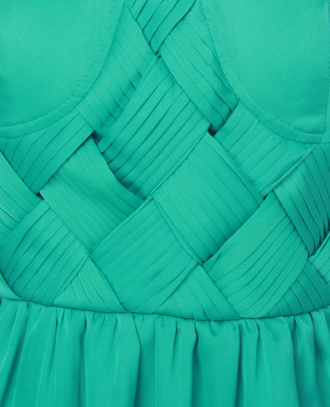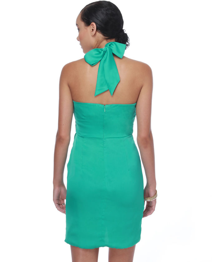 Slip away from those bejeweled sandals and angle in the surf with the Waters Whirled Halter Sea Green Dress to encourage you. This sweet silk dress has pleated bands woven in a criss-cross bodice with soft seamed cups for the bit of mermaid-style enchantment. Wide halter straps link comfortably at back, as well as a contoured tulip skirt creates a smooth form. Invisible back zipper/hook belt. No-slip strip lines inside of best. Fully lined. Model is wearing a small. Small options 27" long, plus adjustable straps. 32" bust line. 26" waist. 98% Polyester, 2% Spandex. Machine and also Hand Wash Cold. Imported.