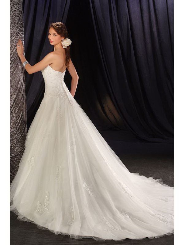 Name Sculptural Floor Length A-Line Strapless Low Back Sweep Train With Embroidery,Button Wedding Dresses WDresses00989