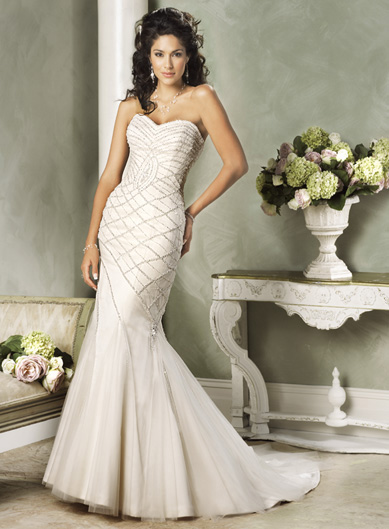 Sheath Strapless Sweetheart Tulle Wedding Dresses (SK0109)