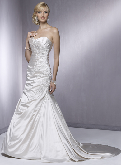 Slim A-line Strapless Sweetheart Satin Wedding Dresses (SK0083)