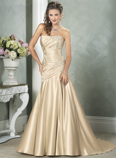 Slim line Strapless Sweetheart Satin Lace Wedding Dresses (SK0070)