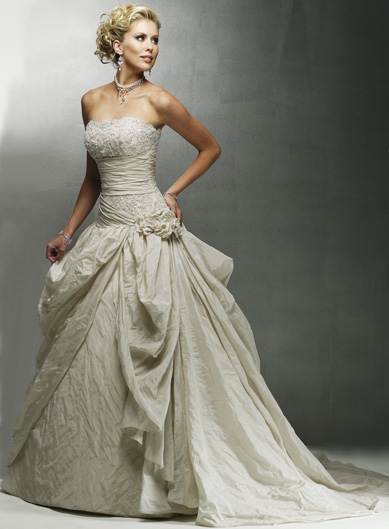 Strapless A-line Chapel Train Taffeta Wedding Dresses (SK0028)