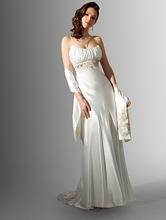 Slim line Spaghetti Chapel Train Wedding Dress (SR0075)