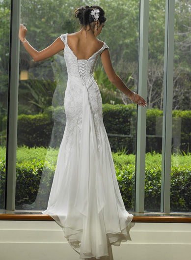 Slim-line Sweetheart All over Lace and Chiffon Wedding Dresses (ST0163)