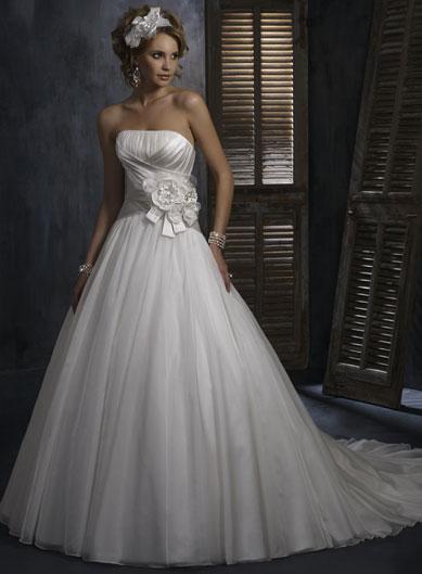 As the name suggests, the a line wedding dress present a similar look as the uppper character "A". The A Line Wedding Dresses are also called the " princesses style dresses". As a matter of fact, the elegant style really deserves such fame. The a line wedding gowns are designed to compliment almost any type of body shapes. This may be different from mermaid wedding gowns which are most appropriate for slender brides. You will never be disappointed for choosing it. There are various designs available in the market to suit different kind of taste and budget. Designs for a line wedding dresses vary from simple to elegant kind to a more embellished kind of attires.