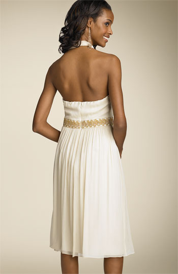 • New Style Halter Chiffon V-neck Style Mid Length Pleated Low Back Wedding Dress