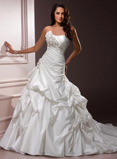 The ball gown wedding dress silhouette can make your princess dreams come true. With a full skirt, you'll certainly be the center of attention as you float down the aisle. The layers and layers of fabric are dramatic and simply dreamy. If you choose the ball gowns, you probably want to hit the ladies room before putting it on. :)