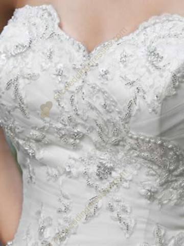 The sweetheart net skirt features beading embroidery bodice.