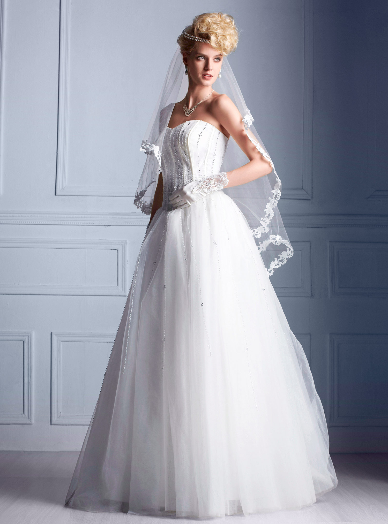 Comes with color veil and gloves, even more elegant and charming