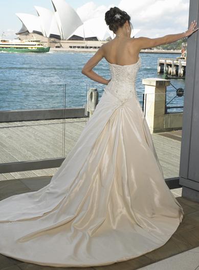 This is a casual champagne a line wedding dress whith is a perfect choice for a beach wedding or other outdoor wedding ceremony. This dress is beautiful dress with no straps but exquisite embroidery on the bodice, making the dress more unique . The back is bared to show the sexy back bones. There are natural drapes on the dress which is as beautiful as the subtle waves of the sea.So if you have a sexy back or attractive skin, please try this one.