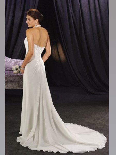Chiffon Halter Ruffled Long Length Sheath/ Column Lacing up Beads working Beach Wedding Dress