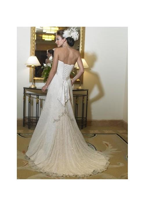 This wedding dresses is full of embroidering,which make it luxury and gorgeous. The v neck elongate the neck and shoulder, and makes the bride's chest fuller.The waist tie play a trick that makes the waist looks thinner.