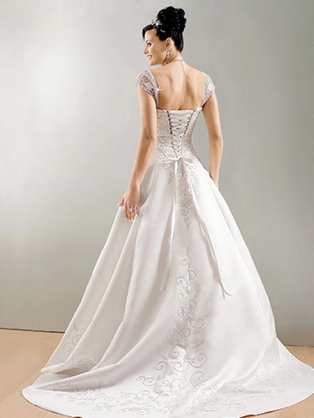 Discount V-Neck Slimming Pleated Satin Beadings Corset style sweep Wedding Dress
