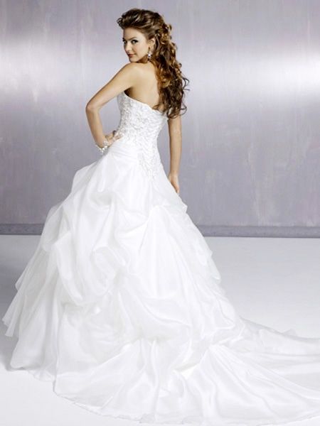 Fabulous Strapless Pleated Beads Working Embroidery Applique Layered Drape Satin Wedding Dress